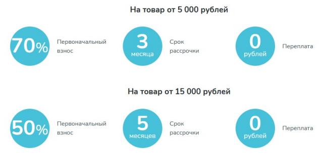 Товары, для которых доступен такой способ оплаты, отмечены специальной меткой « Рассрочка без банков». Также магазин предлагает рассрочку через банки на 6, 12 или 24 месяца — такие позиции имеют отметку «Рассрочка 0-0-(срок рассрочки)». На смартфоны, не отмеченные указанными способами, рассрочка доступна при покупке дополнительной гарантии на 1 год и более. Недоступна оплата по частям для позиций со стикером «СТОП-ЦЕНА».