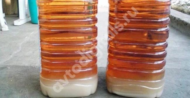 Есть ли вода в бензине, расскажет обычная марганцовка. Для проверки достаточно одной крупинки, брошенной в банку с топливом. Вода тут же окрасится и будет плавать в бензине яркими пятнами. Бензина же не может окраситься марганцовкой.