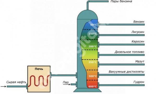Любое автомобильное топливо получают из нефти. Поступая на НПЗ, последняя нагревается и методом «перегонки» сортируется по температурам кипения на разные виды горючего: бензин, керосин, дизтопливо, и, в остатке, мазут.
