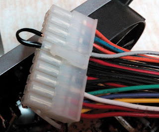 А это перемычка. Которая запустила блок питания. Просто замкнул серый провод на чёрный (общий, или минус). Хотя вроде как народ через сопротивление этот провод кидает.