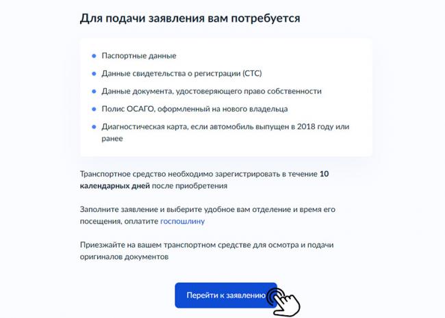 Если вы собственник ТС, нажмите на кнопку «Перейти к заявлению».