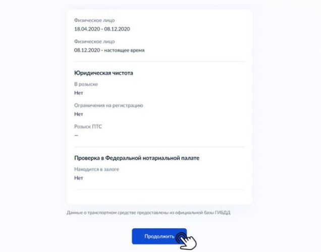 На этом процесс подачи заявления на регистрацию ТС через Госуслуги завершается.
