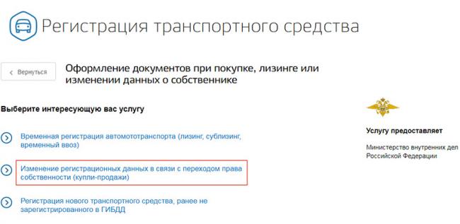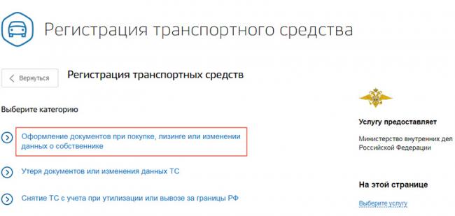 Шаг 3. Перейдите к пункту «Оформление документов при покупке, лизинге или изменении данных о собственнике».