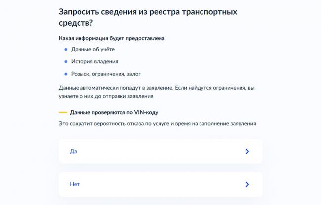 Шаг 6. Сайт предложит запросить информацию о ТС из реестра. Можно подтвердить запрос либо отказаться.