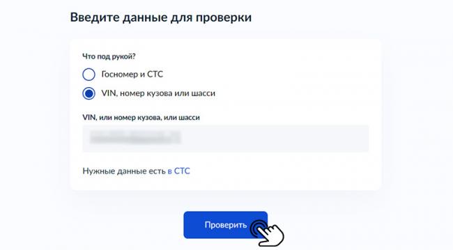 Если нажмете на кнопку «Да», в следующем окне сервис предложит выбрать, какой способ запроса сведений для вас удобнее – госномер и СТС или VIN, номер кузова или шасси. Выбрав нужное, кликните по кнопке «Проверить».