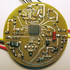 Необходимо сделать две платы: одну для дисплея; вторая же будет основной. Обе платы должны иметь форму круга, а их диаметр корпуса должен составлять 50 мм. Достаточно трудно найти индикатор ответной части под разъём, поэтому рационально выполнить разводку под шлейф. Нужно также отпаять разъём от ответной части и на его место припаять только с обратной стороны припаять шлейф, сам же дисплей можно прикрепить при помощи двухстороннего скотча.
