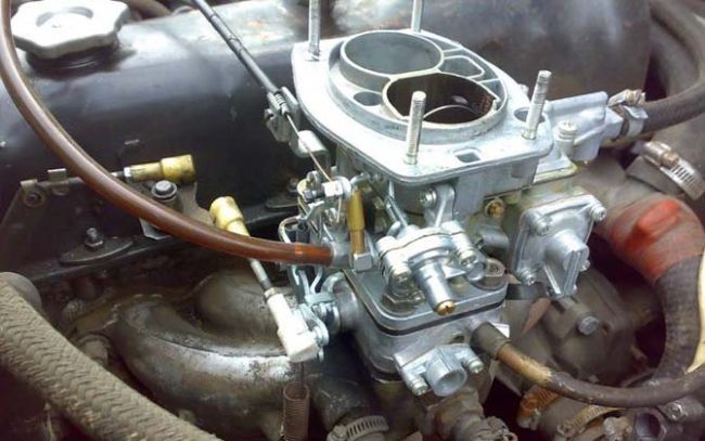 23. Отсоединить все топливопроводы, жгуты проводов, трубки и тяги от карбюратора (см. «Система питания»).