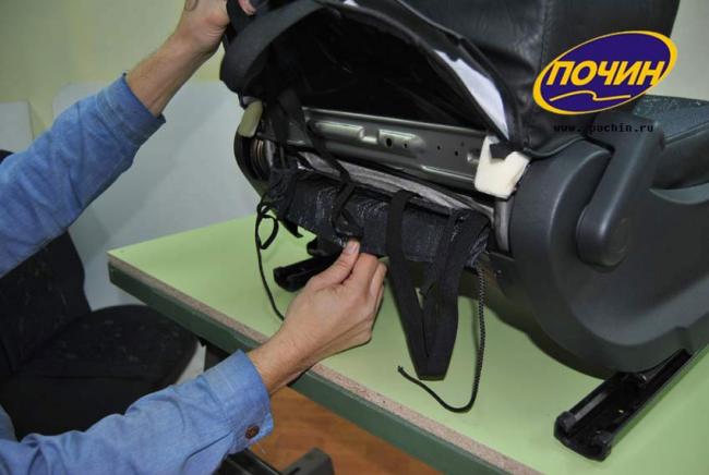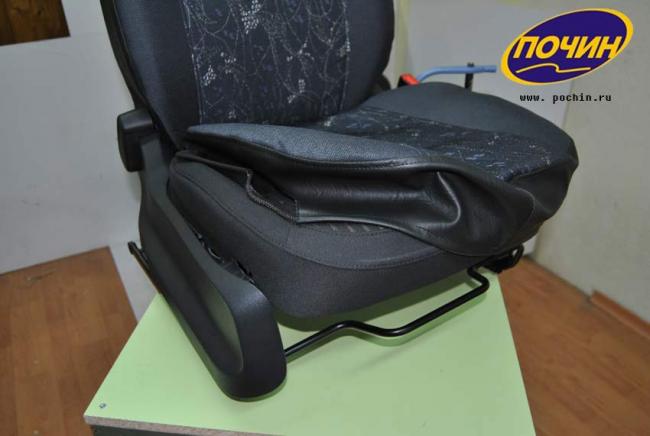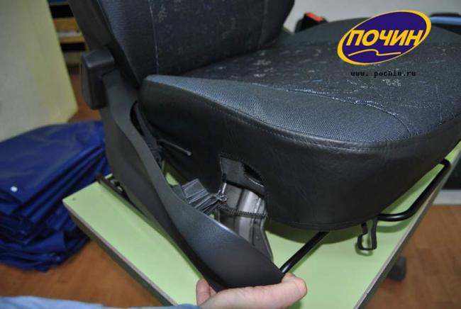10. Устанавливаем поочередно штатную обивку сиденья и чехлы на спинку и сиденье. Все резинки крепятся под передним сиденьем.