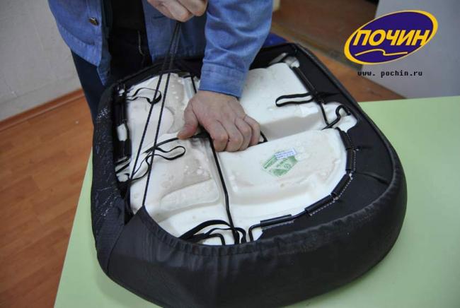 Снимать нужно не спеша, потому что можно деформировать поролон и каркас, который в него влит с завода.