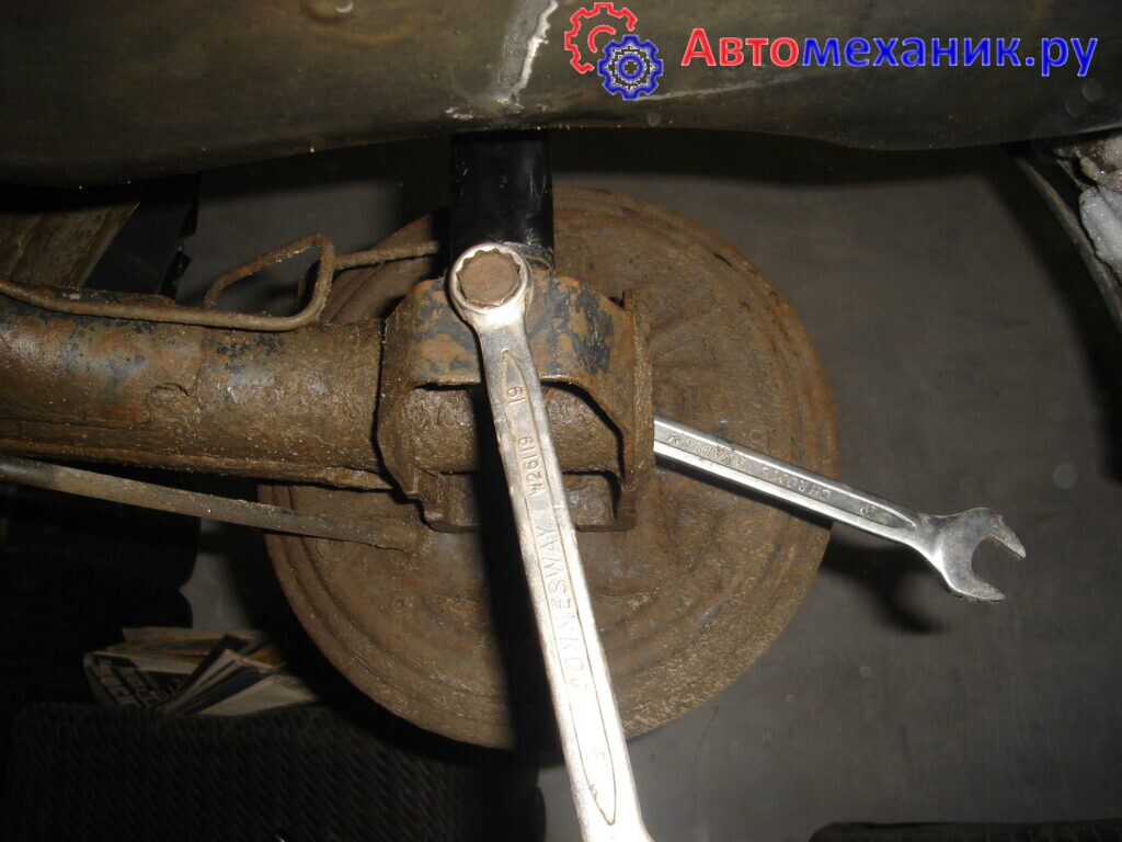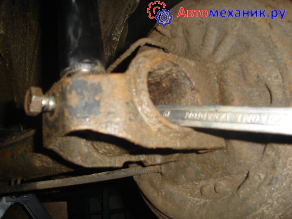 13. После этого поддомкрачиваем машину( желательно с обоих сторон, потом легче будет аммо вытаскивать) и откручиваем вот этот болт.