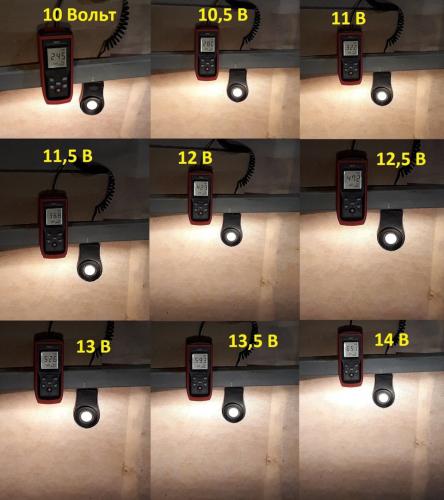 Любительские замеры люксметром, для понимания влияния напряжения на освещенность.