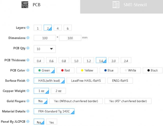 Было принято решение попробовать заказать платы у JLCPCB, тем более, что для этого проекта мне нужны были платы с типом покрытия — ENIG (иммерсионное золочение), за которое DDAYA PCB Store выставил цену гораздо выше чем JLCPCB.