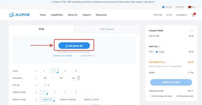 Итак, идем на сайт JLCPCB
