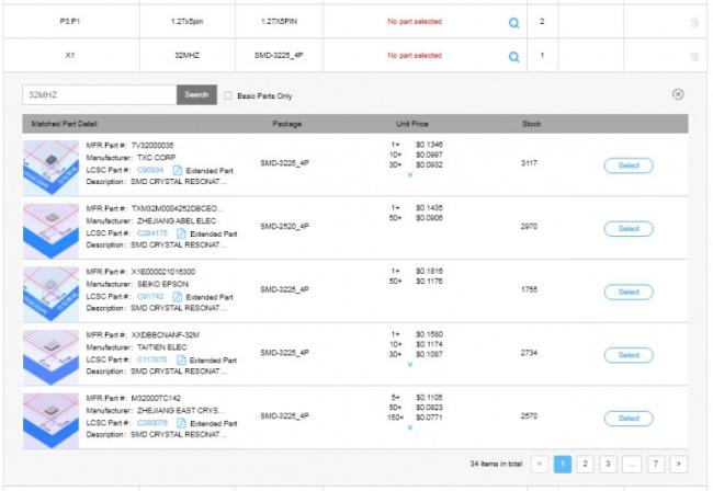 Детали, которых нет в библиотеке деталей JLCPCB SMT, не будут размещены на вашей доске.