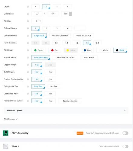 PCB Qty — здесь указывается количество плат, которое вам требуется. Заказать можно от 5 до 80.000 штук.