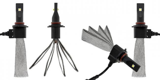 Эффективность отвода тепла во многом зависит от площади обдува. Но назначение автомобильных лед-ламп не предусматривает возможность включения в конструкцию крупных металлических деталей. В поиске компромиссного решения инженеры создали гибкие радиаторы и радиаторы с рёбрами.