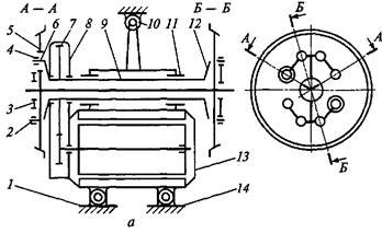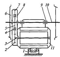Рис. 10.3. Опорно-рамное подвешивание 3-го класса: 1 – тяговый электродвигателей;