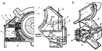 Рис.40. Смазочные устройства моторных подшипников: смазочные камеры (а); шестеренный привод насоса(б).