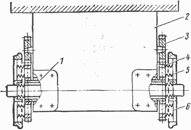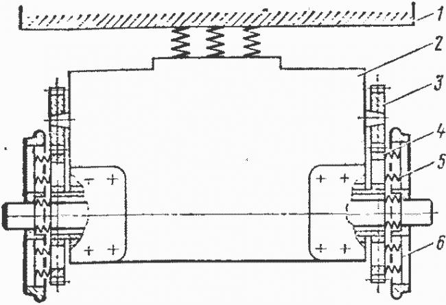 Рис. 21. Схема опорно-рамного подвешивания тягового двигателя типа «Сешерон»: