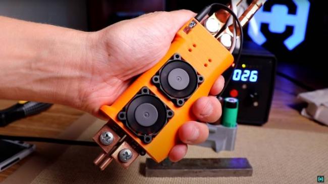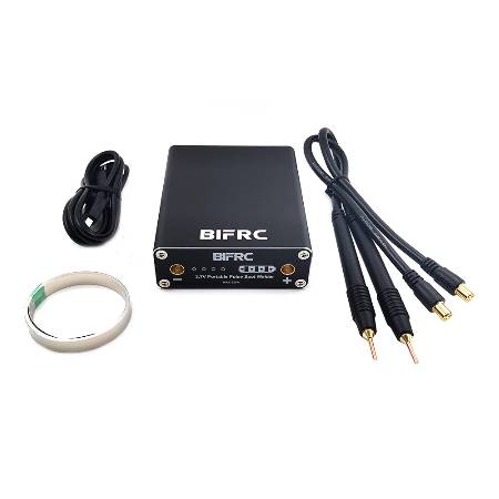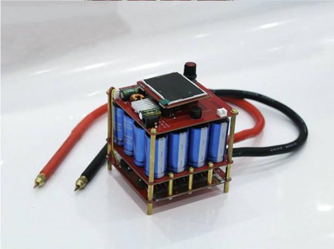 Еще один вариант сварочного аппарата без привязки к розетке. Это также маломощный прибор, но для небольших работ его хватит. Плюсом является то, что это уже готовый к работе аппарат. У него есть встроенная батарея на 5500мАч, которую можно заряжать через порт Type-C от любого USB источника. Заявленная мощность 4,2 V Макс 650A, что хватит примерно для сварки ленты около 0.1-0.15мм.