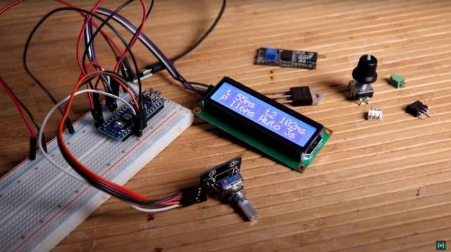 Задача по управлению длительности импульса лежит на довольно простом контроллере, который был взят с одного сайта. Устройство собрано на базе Arduino NANO, с применением жидкокристаллического дисплея для вывода полезной информации. Управление по меню осуществляется с помощью энкодера. Элементарно и просто подумал я, и начал собирать устройство из имеющихся в хозяйстве модулей.