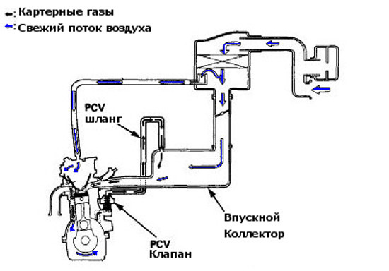 Система вентиляции картера двигателя, принцип работы, PCV.