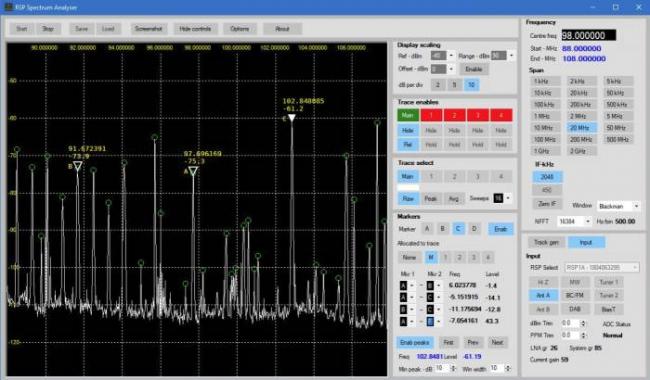 Внутри такого устройства расположен миниатюрный процессор, который обеспечивает оцифровку радиоволн, в дальнейшем все будет выводиться на компьютер. В отличие от стандартного приемника, где для настройки крутится ручка, что обеспечивает поиск нужной радиостанции, в SDR информация выводится на экран. Все станции, которые на этот момент есть в эфире, отображены на экране. И это удобно, так как больше не нужно наугад искать станцию, необходимая выбирается со списка.