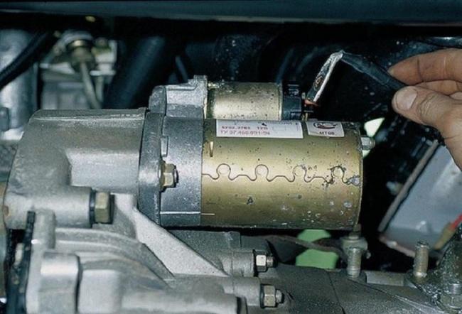 - стартер за корпус отводится в сторону пассажирского сиденья, чтобы бендикс вышел из посадочного места возле маховика;
